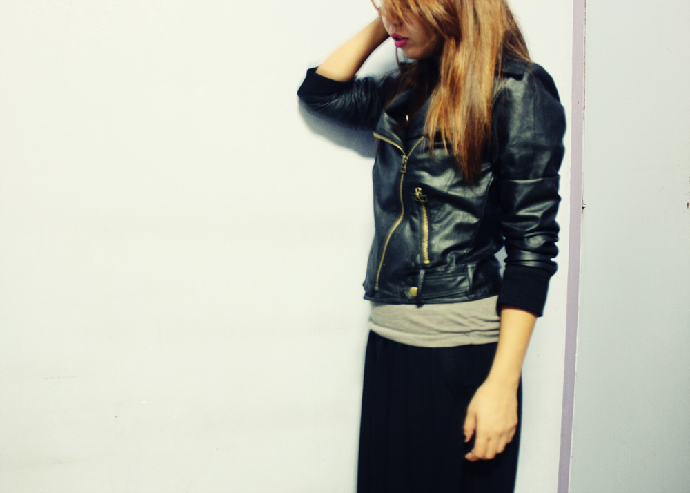 Moto jacket + maxi skirt is the perfect combo! You look awesome, girl!